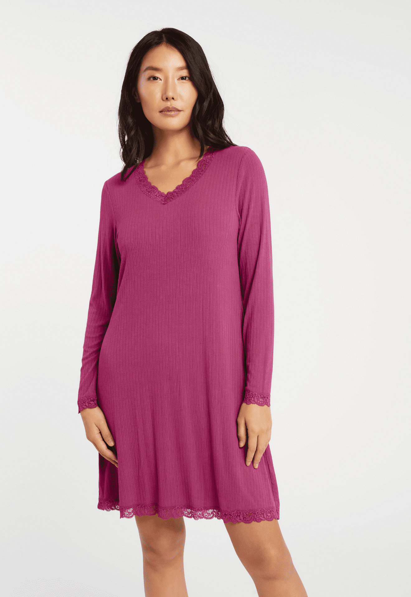 Restez au chaud et ressemblez à un rêve dans cette chemise de nuit modeste, faite de modal TENCEL™ doux et respectueux de l’environnement. Le style est ample pour votre confort et présente des accents de dentelle douce le long de l’ourlet, de l’encolure et autour des poignets pour ce petit quelque chose de doux.